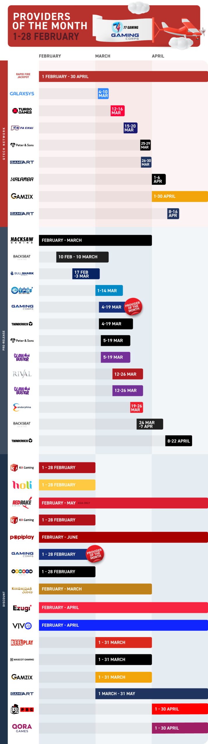 提供商网络活动由我们的顶级提供商精心设计,并向所有客户开放!这些激动人心的活动旨在提高参与度和竞争。 完全免费参与!